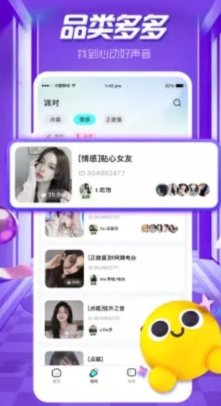 竹伴语音是一款能够随时带来优质社交体验的手机社交聊天类软件,竹伴语音软件使用起来非常简单轻松容易,聊天记录内容都会被完整的保存下来,可以查看到用户的喜好以及特长,所有的图片以及视频照片内容打造的都非常真实,能够随时带来不同的体验乐趣。