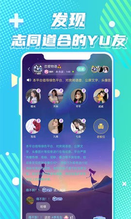 YuYu语音是一款可以随时提供各种福利的手机社交聊天类软件,软件拥有多种不同社交服务,在沟通交流的时候也可以节约更多的时间,能够认识更多优秀的用户一起在线去沟通交流,聊天的时候也更加的轻松简单,能够快速提供各种优质福利可以领取。