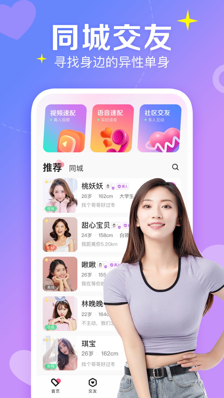 1.通过随时在线聊天交友,逐步扩大朋友圈范围,上手非常简单。
