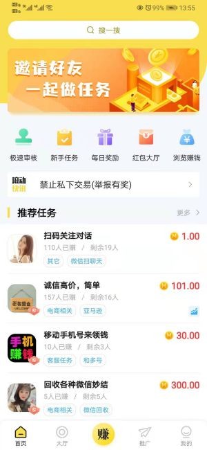 2.软件里面让大家了解一些佣金比较高的兼职,根据个人的实际水平在相应的任务大厅进行选择。