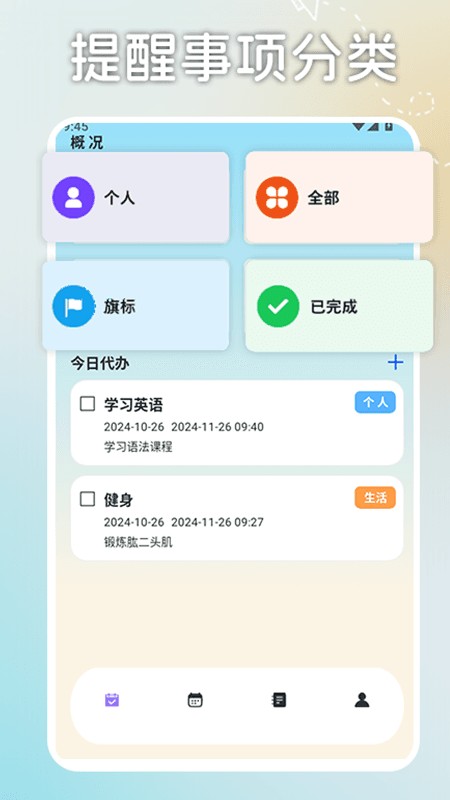 3、支持多标签分类,如“工作”、“学习”、“生活”、“健身”等,便于按场景管理任务,提升效率。