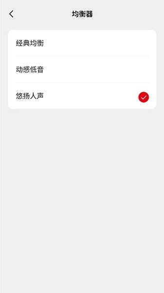 内置“经典均衡”、“动感低音”、“悠扬人声”三种不同音效。