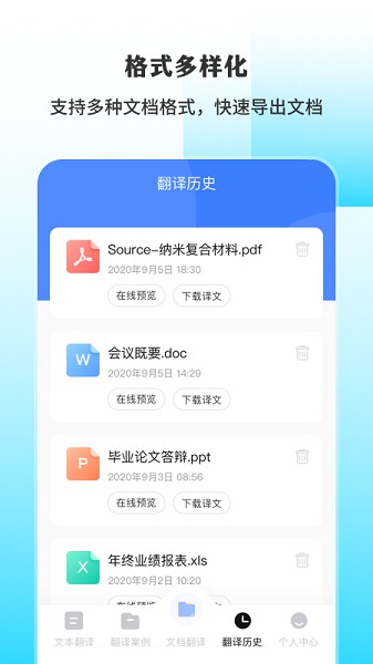 word、ppt、pdf等多种文件格式,一键上传翻译成中文。
