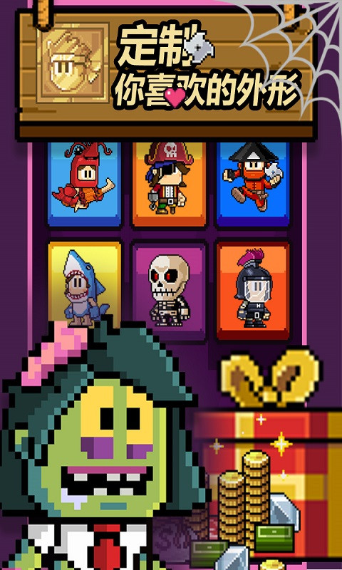 1.游戏有着像素风的场景和人物,在这里你可以感受到很多有趣的冒险玩法,快来打败前方的敌人吧。