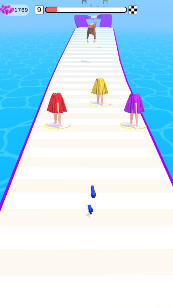 玩家走在路上可以收集散落的衣服,穿搭在自己身上炫耀起来,提高自己的魅力形象,走位的时候注意避开不同的风险,提高着激动走位速度吧,轻松越过不同的障碍物,以完美的舞姿来赢得胜利。