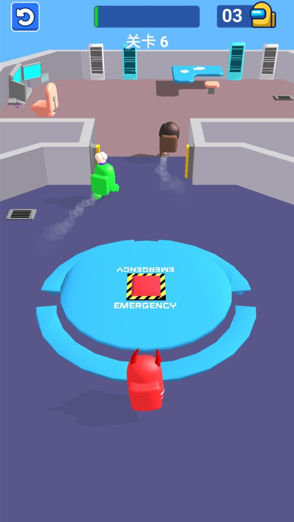 控制玩家来追击红色的小人物,玩家控制自己在竞技飞船的场地上挑战,随机获取一个身份角色,完成所有的任务使命,快速的闯入不同地形。