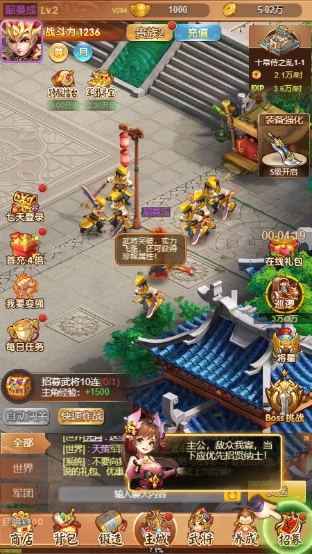 2.开启短暂属于自己的三国英雄争霸赛,乱世的时代需要使用自己的兵力来进行城池的攻略