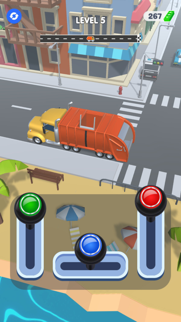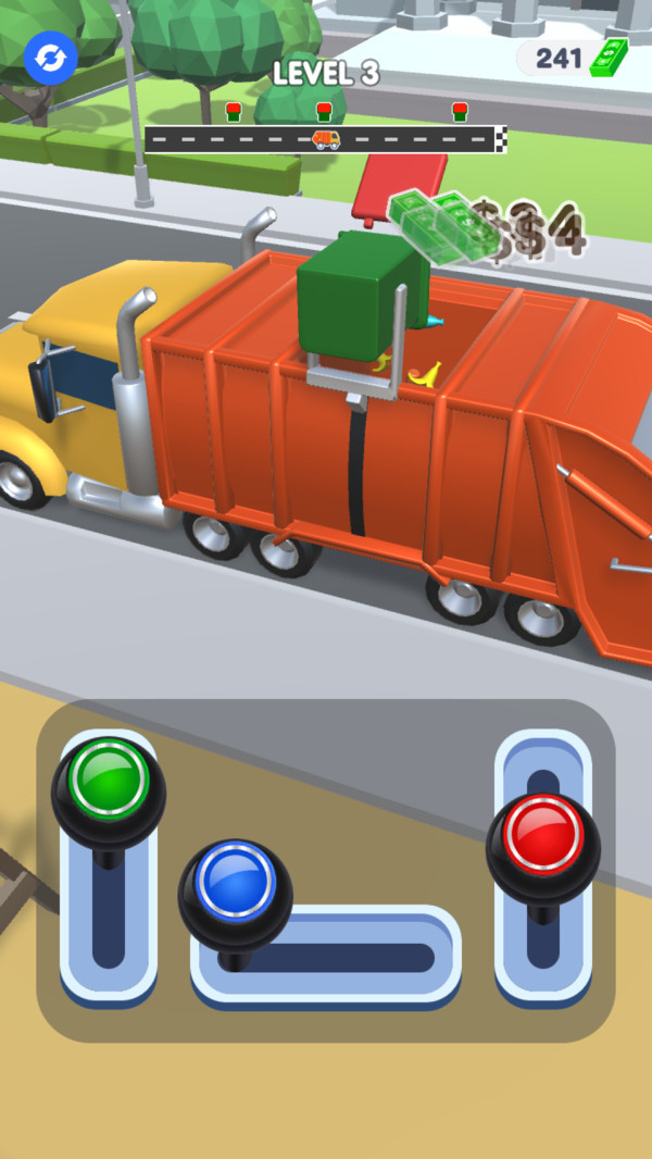2.驾驶垃圾车在城市的每一条街道上回收更多的垃圾,完成各个级别的挑战;