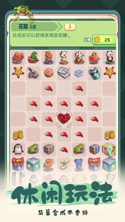 这是一个非常特别的合成游戏。它可以把各种小动物放在一起赚钱。它可以通过解锁不同的材料来装饰。规划每天都会改变。这个机会非常难得。注意好的速度很重要。画面风格可以随时改变,真正的机会可以利用。