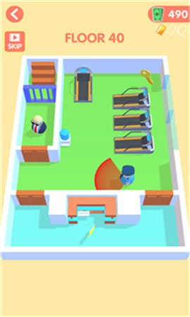 10层:先踩黄色方块进入保安房间拿到钥匙,出来再踩一下黄色方块。