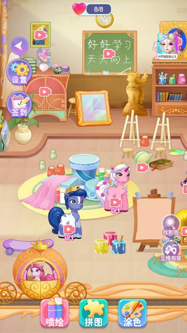 1.玩家将轻松上色上百种颜色的壁纸等着您来制作,小马游戏装扮相信你可以玩得很开心