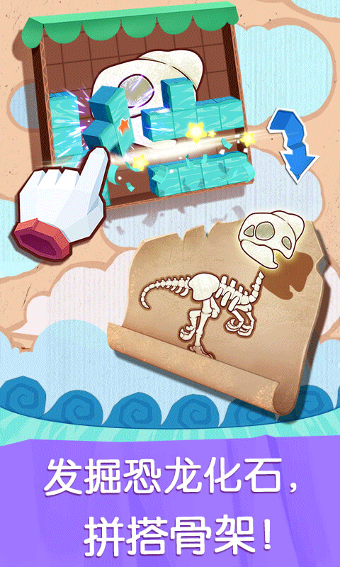 宝宝巴士奇妙恐龙世界游戏是宝宝巴士推出的恐龙世界探险游戏,玩家扮演专业的考古学家,亲自动手挖掘神秘洞穴、可以发现各种形状的恐龙化石,随时拼搭骨架让恐龙复活,搭建各种家园、守护好恐龙世界,了解恐龙的生活习惯。