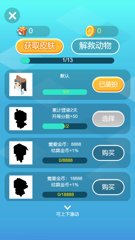 3.游戏的过程中玩家需要不断的收集更多的金币,从中能够兑换更多的皮肤
