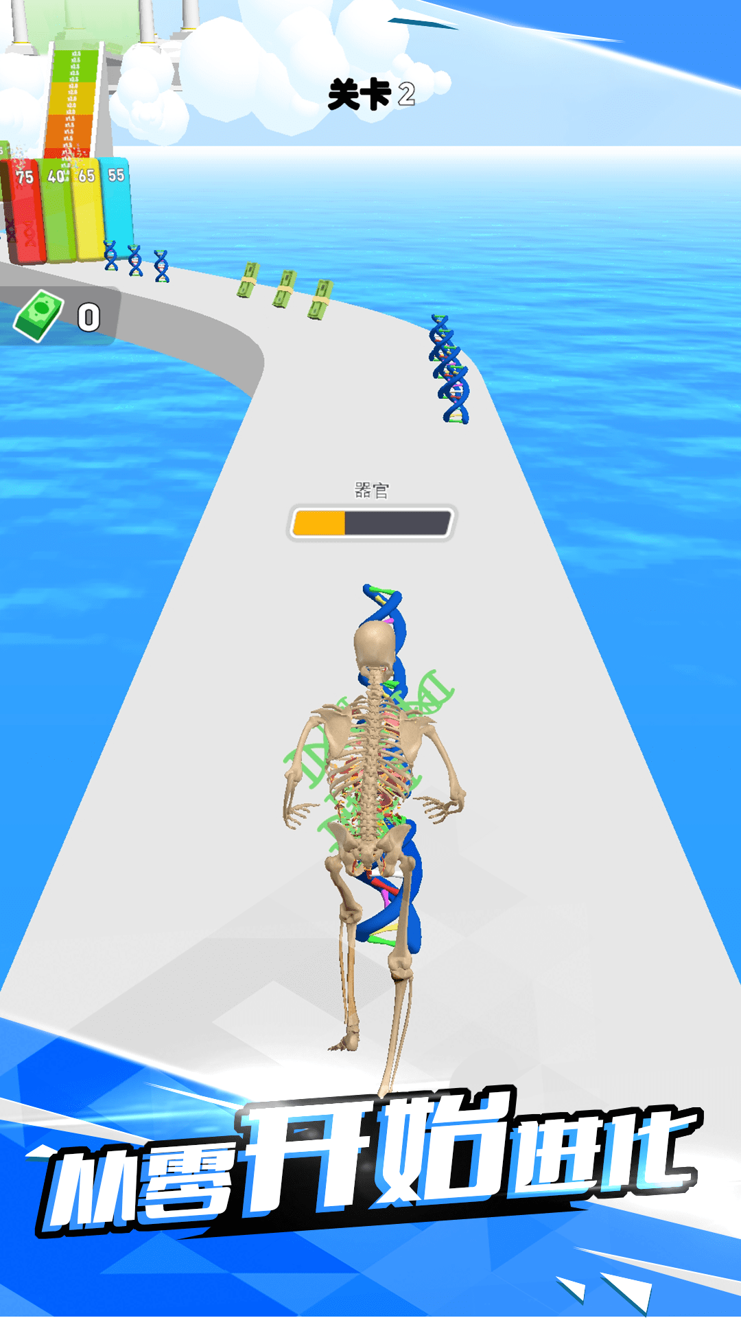 一款超级好玩的模拟进化类游戏。一开始,你只是一串DNA数据。经过不断闯关冒险,就可以获得更多的身体。然后,继续勇敢地突破,在路上收集道具,帮助主角继续朝着人类进化一步步前进,收集更多的四边形代码,然后成功到达终点。玩起来真的超级好玩!