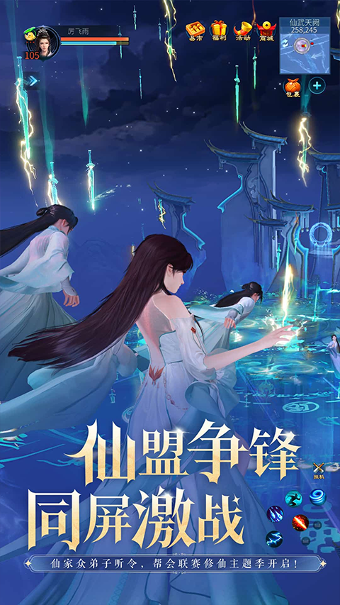 长生仙路,一剑倾天。全新职业剑仙,剑斩天命,贯日而来!新玩法灵墟剑劫,以及开书比拼、转职基金等限时特别活动同步开启,且看剑锋过处,斩断青冥!仙风道骨,逍遥涤尘,逍遥观场景迭代,更有全新晴雨天气切换,云腾仙雾,莫不逍遥!呼朋引伴、无限欢唱,百相·演奏系统支持乐团新玩法,可邀请好友合奏合唱,默契演绎,友情地久天长!