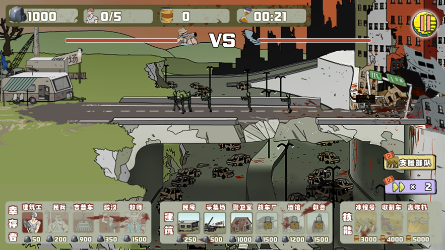 1.包含射击、管理和战斗等各种游戏元素的僵尸战争游戏;