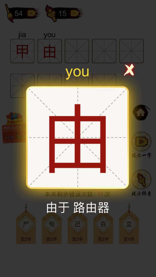 2、汉字的多种结构可以变化,享受不同的汉字卡牌、收集起来感受到古老的环境;