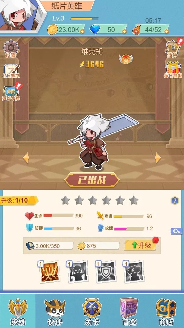 纸片英雄小程序是一款策略放置角色闯关游戏,游戏以纸片人风格主题立绘,讲述的是小镇的英雄如何利用自身的能力带领伙伴走向胜利,纸片英雄小程序策略战术放置战斗,玩法上添加了军团系统和盲盒系统,各种对战场景画面的美术别致充满快乐