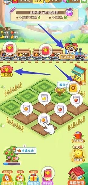 2.任务很简单。每天登录游戏种新树苗,施肥浇水,果树长大后可以收到大红包。届时培育出来的水果会比以前更大更甜。