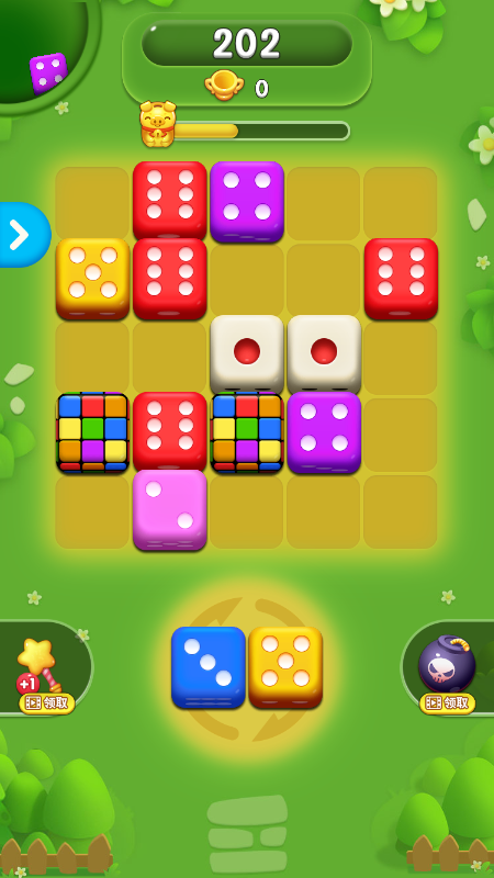 3.卡通三维画面效果更加的吸引人,游戏主要由色彩各异的小骰子组成