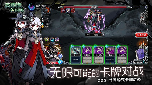 经典的暗黑漫画风格打造的游戏画面,众多功能新颖的卡牌和外貌独特的怪物。