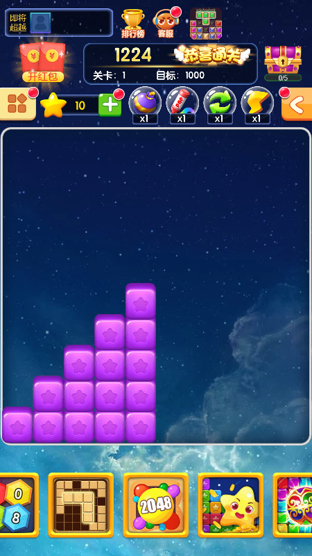 2.玩家可以通过拖动方块来将所有的方块进行消除,连击数越高玩家获得的分数加成就越多
