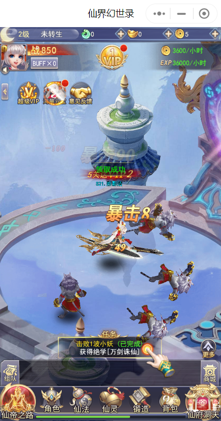 仙界幻世录H5小程序是一款创意的仙侠互动闯关小游戏,精致的画面玩家们可以进行很好的享受欣赏里面的美景,有着完美的系统设计让你轻松游戏,仙界幻世录H5小程序当你的等级一点点提升和战斗力不断进步时,你会非常快乐,各种挑战任务奖励也非常多哦