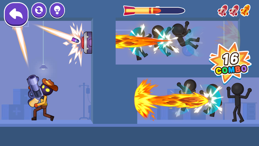 3.神奇又好玩的射击方式,需要你用手指画出射击路线才能成功击倒敌人。