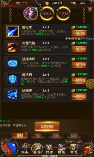 2、挂机系统的存在对于玩家来说升级还是非常快的,像新手一样,能在短时间内融入这里,玩得很开心;