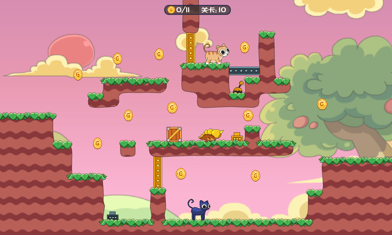喵喵侠侣是一款趣味性十足的双人冒险挑战游戏。喵喵侠侣游戏中我们将会在这里看到两只可爱的流浪猫,一胖一瘦他们一起闯荡江湖,在此途中有着各种不同的危险和陷阱在等着他们,需要克服各种不同的困难,同时还能收集更多的金币来完成更多的挑战,体验更多精彩的内容。