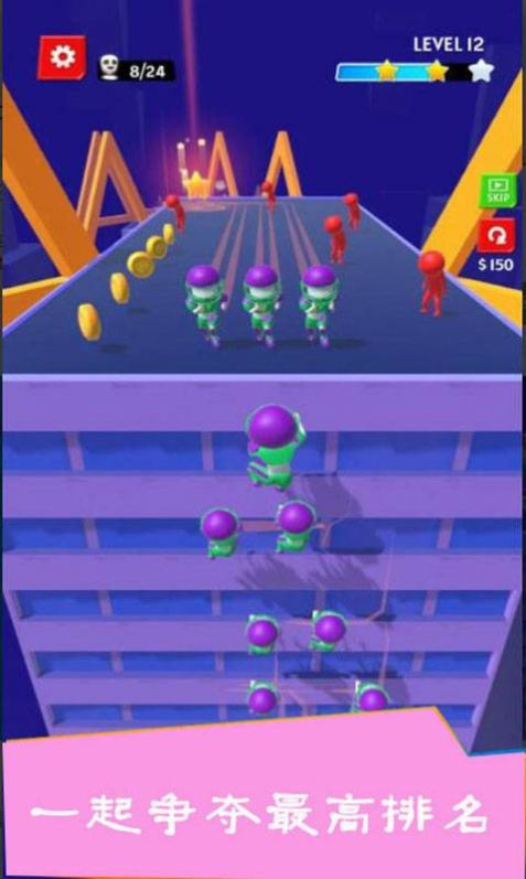 欢乐奔跑是一款热血的橡皮人极限跑酷的休闲游戏。面对不同的环境,想要跑起来就只有运用自己的跑酷能力,在每一个关卡中都有格子很独特的配置,你与其他的人一起争夺这第一名。