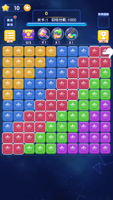 暴击消消乐小程序是一款消除冒险闯关小游戏,暴击消消乐小程序游戏以星空世界中的元素任务为主,玩家需要在规定的时间里快速的找到相同的元素将他们进行消除,为了保护玩家的视觉,游戏的色彩搭配得十分的腰线,因此在找寻相同的星星的时候将更加的轻松