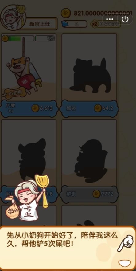 全民铲屎官小程序是一款全新的养成模拟小游戏,全民铲屎官小程序在这里大家需要做出冒险之旅,吸引更多的顾客为顾客买做出不同类型的宠物,每种类型宠物的收益都是不一样的,大家可以不断提升自己的收入,可以进行合成升级,解锁更多的宠物,开启致富之路,让大家感受不一样的游戏体验