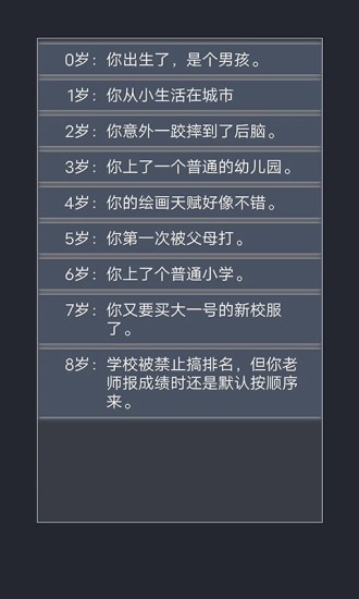 玩家一开始就可以加点天赋,选择不同的人生轨迹来体验,游戏里面正常的成长、生老病死都需要一一体验,经历不同的挫折、让你的人生更加的光彩照人。