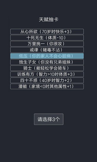 1、随机的天赋属性可以增加,享受不同的经历、选择不同的人生来体验;