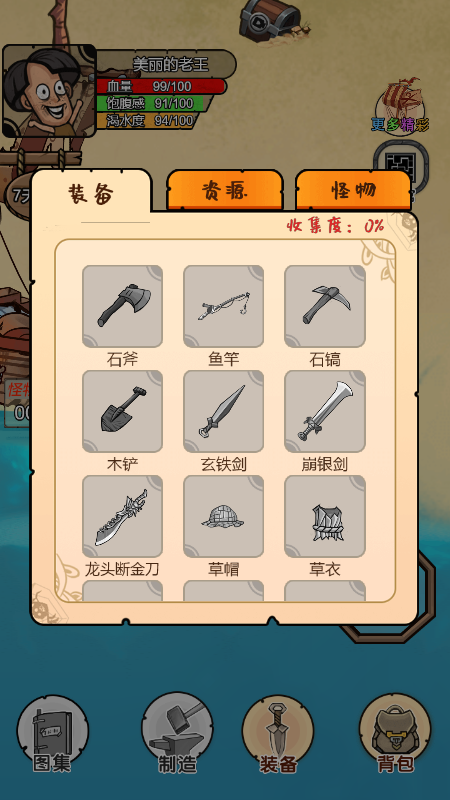 开荒当岛主小程序是一款类似饥荒的生存模拟挑战小游戏,玩家需要耐心对待每一个面临的危机和挑战,在荒岛中寻找遗失的船只碎片,开荒当岛主小程序还有大量的游戏道具和玩法模式,竖屏的操作更加自由方便,点击你的精神小伙就可以轻松生存冒险了