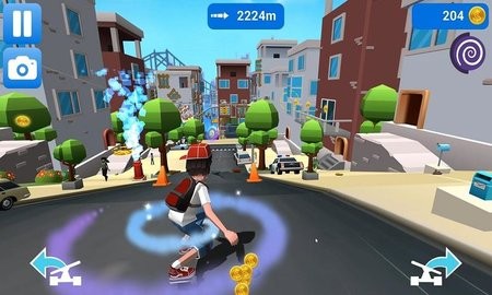 3.你可以用收集到的金币购买更高级的滑板和各种服装。