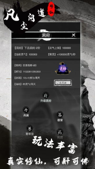 简约放置风格的修真冒险游戏