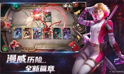 UI设计的氛围充满了漫威漫画独特的风格元素,人物的竖画设计也非常精致细腻,玩牌中加入了任务的特效。