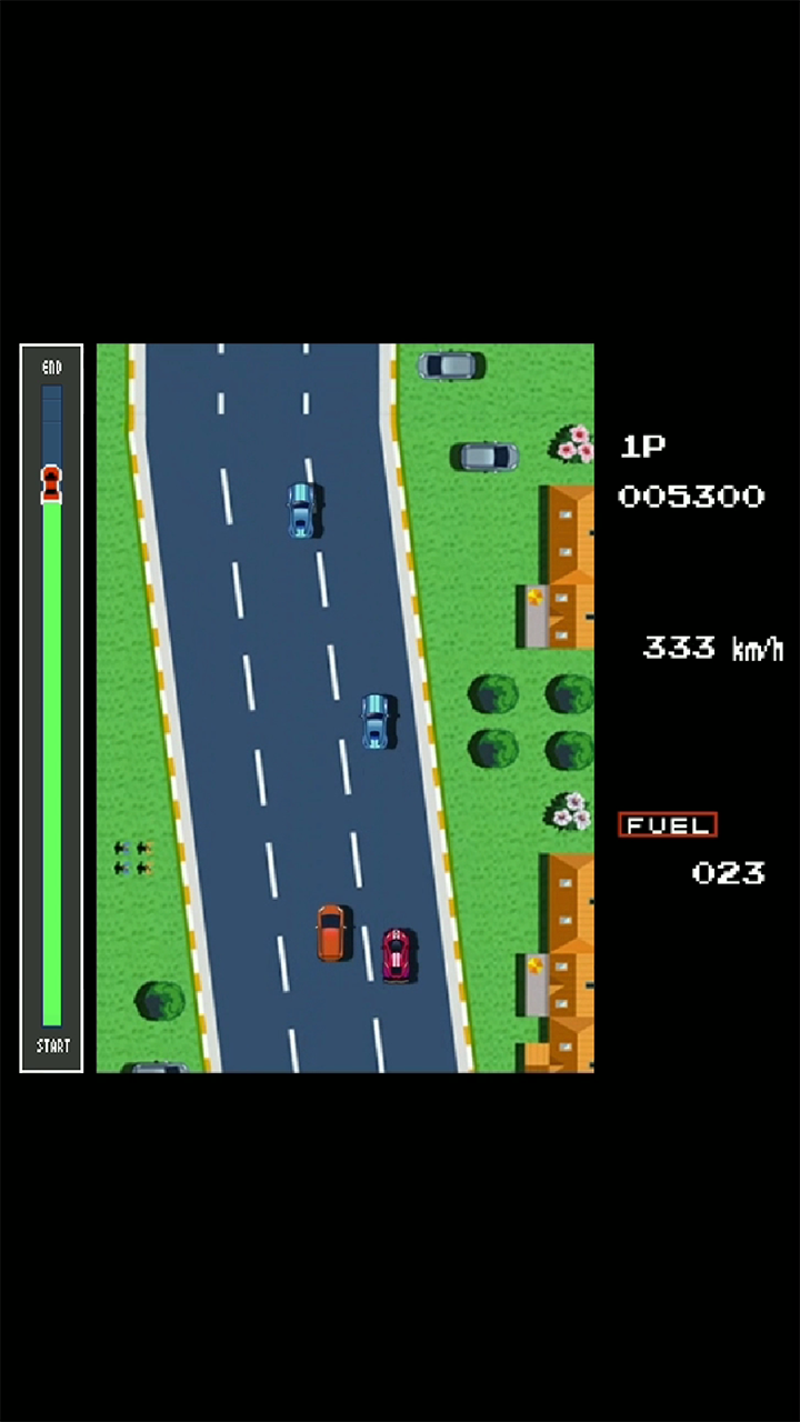 玩家控制自己的车辆来挑战,所有的技巧可以完成,体验重重艰难的关卡吧,运用不同的技巧来开车、达到最高的积分吧,所有的障碍物都要避开,努力的向前冲刺,超越所有的赛车吧,在经典像素的竞速跑道上较量一番,燃烧自己的驾驶欲望。