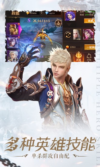 1、帮助你的英雄角色来出击,还有不同的英雄各显神通,熟悉不同的神圣角色降临;