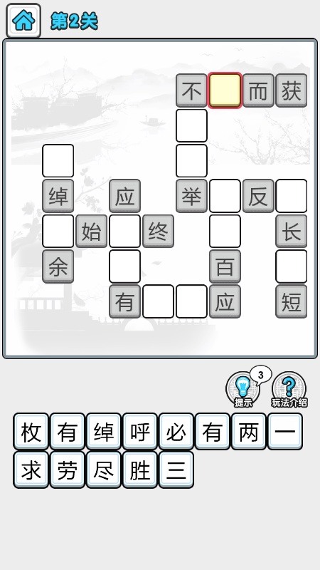 2.既学会了认识更多的成语,又享受了游戏的乐趣,关卡特别多