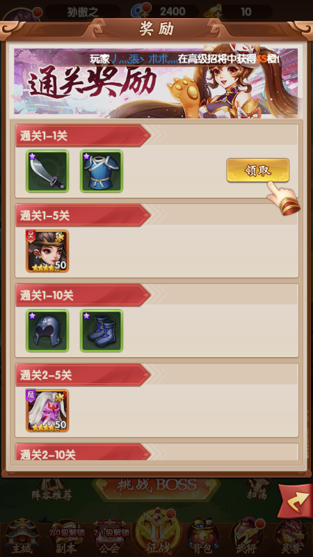 1.三国世界提供给玩家的等级分化非常的明显,需要玩家去战斗才能更好的升级