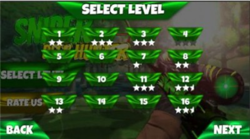 你将在游戏中通过射击来完成不同的挑战,在游戏中玩家将面临许多挑战。你需要在一个庞大的地图上狩猎动物,关卡中的动物并不是站着不动的,它们是会移动奔跑的,增加了游戏的难度。不断克服一个个的困难来获得不同的奖励。