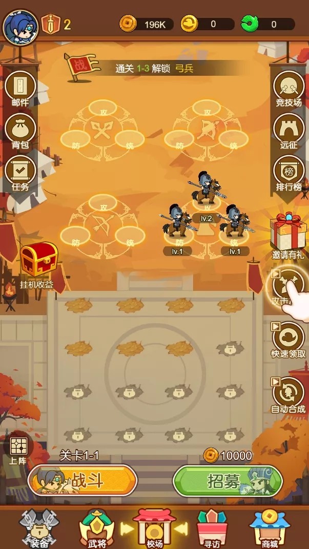 1.游戏以三国为主要的背景,能够让玩家们在游戏中选择自己喜欢的三国阵容