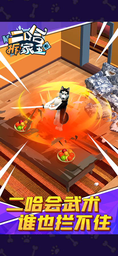 1.一款以哈士奇为核心的拆家游戏,玩起来简单有趣,全新的游戏操作和任务开始了。游戏内容非常解压;
