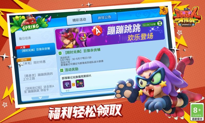 野蛮人大作战1.0.400版本更新了多人竞技对局的比拼,在开创的多维世界中冒险,野蛮人大作战1.0.400版本有着创新的玩法,大量的挑战模式开始,超多的玩法可以体验、收集不同的角色,在真实的游戏剧情中挑战,游戏里面可以收集宠物,轻松随意的挂机鲊斗吧。