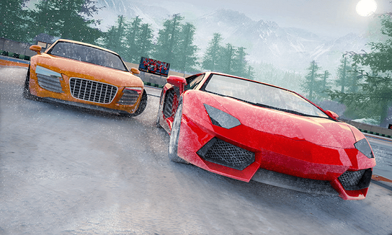 一款基于雪景的赛车游戏,大家都知道在雪地里开车比较困难,容易滑倒,而且还有各种随机事件,所以这是对玩家驾驶技术的考验。