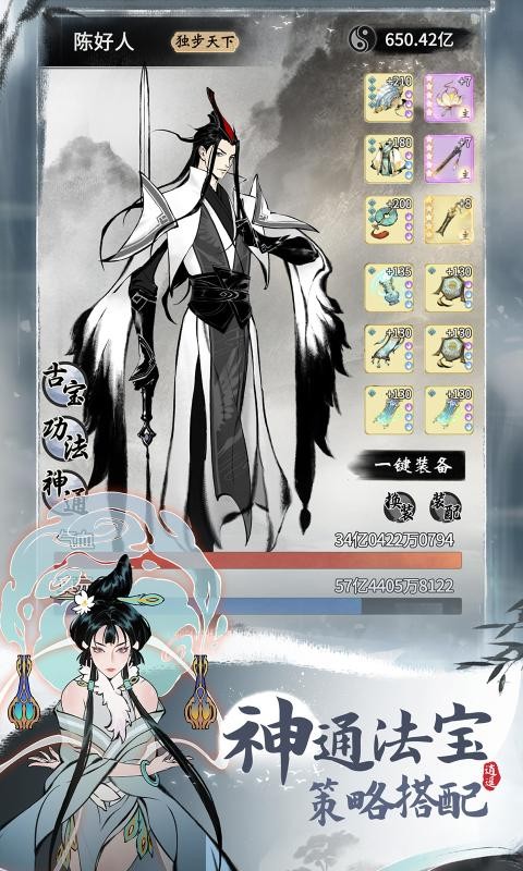 2、与不同的角色契合组合起来,各种神装都可以搭配,灵活畅爽的战斗吧,合成所有的法器;