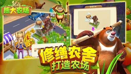 熊出没之熊大农场最新版是一款根据熊出没动画推出的农场经营游戏,这次光头强将于熊大一起携手创作美好的农场家园,能够解锁众多的建筑和工具,收割农作物进行交易,喜欢的朋友就来下载试试吧!
